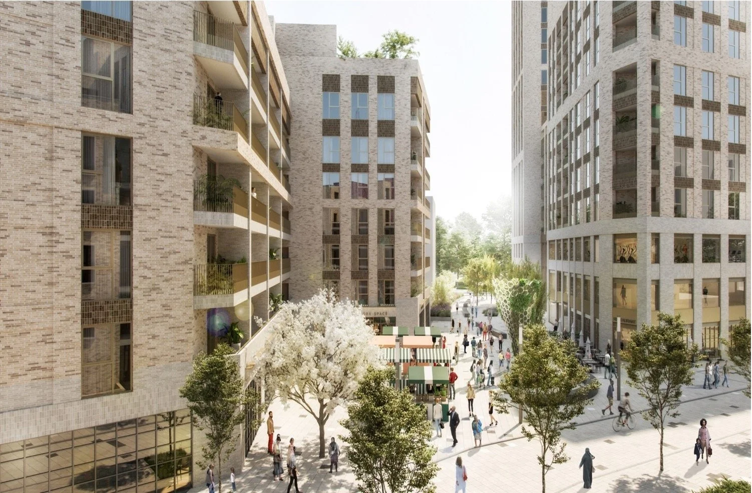The two sites will deliver over 553 new homes including 141 social rent units and 98 shared ownership units. There will also be a Health & Wellbeing Hub featuring a health centre, gym, an array of shops, affordable workspace, and a new market square along with enhanced landscaping and highway improvements to Neville Road.